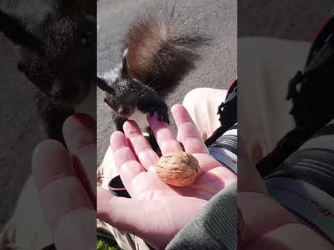 Beschreibung: Heute waren wir wieder bei den Eichhörnchen. Kaum hatten wir die Nüsse ausgepackt, sprang eines herbei und schnappte sich seine direkt von meinem Schoß.